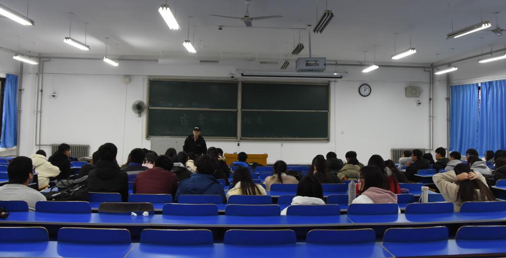 为营造文明和谐,安全舒适的寝室环境,助力文明校园创建工作,12月5日中午,嗨皮漫画 于八合一教室开展了宿舍安全教育会议,全体宿舍长参加了本次会议。