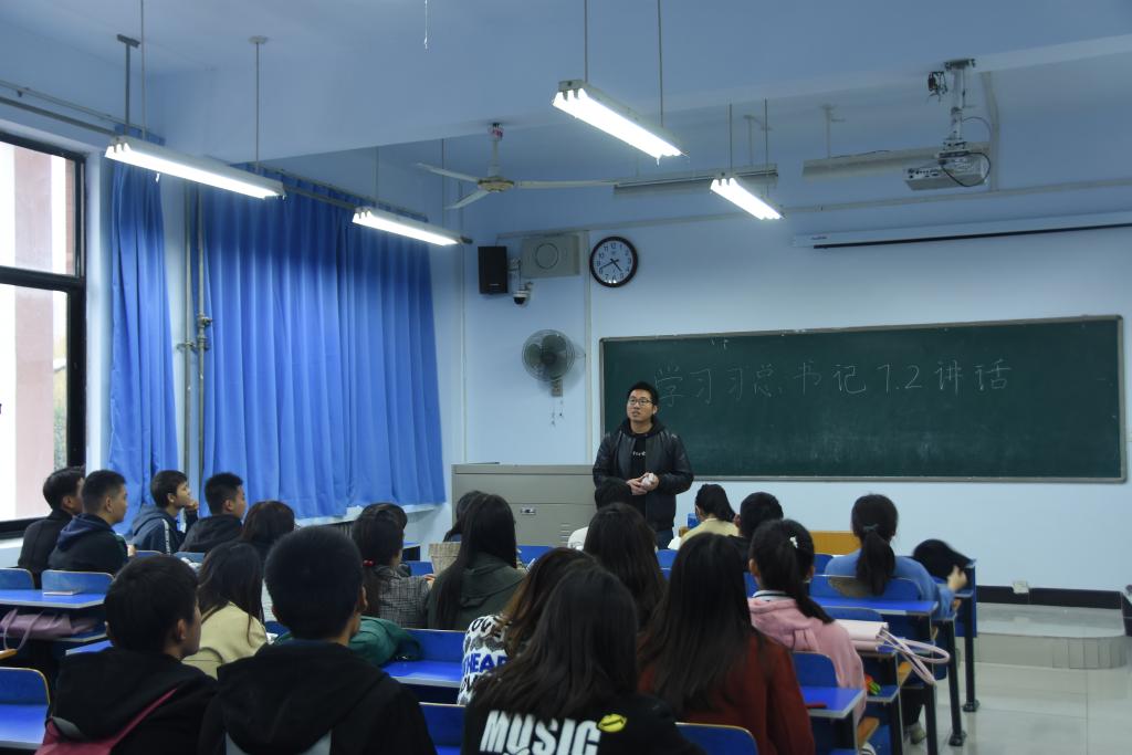 刘喜明首先向同学们详细讲解了习近平总书记7.2重要讲话做蕴含的时代精神并介绍了党中央关于青年工作的基本要求,引导广大学生要积极学习习总书记的讲话精神,争做时代新青年。随后,刘喜明向广大学生干部提出要求,要深入学习习近平总书记的7.2讲话精神,把学习成果体现在各项工作中,认真履行好学生干部的职责,为我院共青团工作贡献自己的力量。