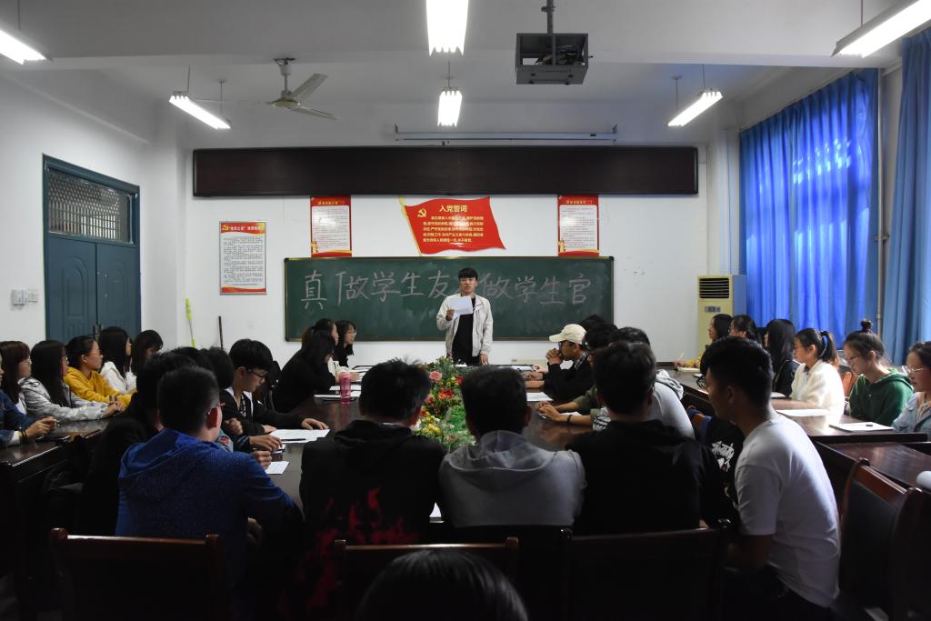 3.最后,由顾昊主席做出总结:作为一名学生干部,把服务同学作为主要目的,牢记学生会群众工作的本质,珍惜服务同学的荣誉和锻炼能力的机会,甘于奉献,自觉自律,不忘初心,牢记使命。
