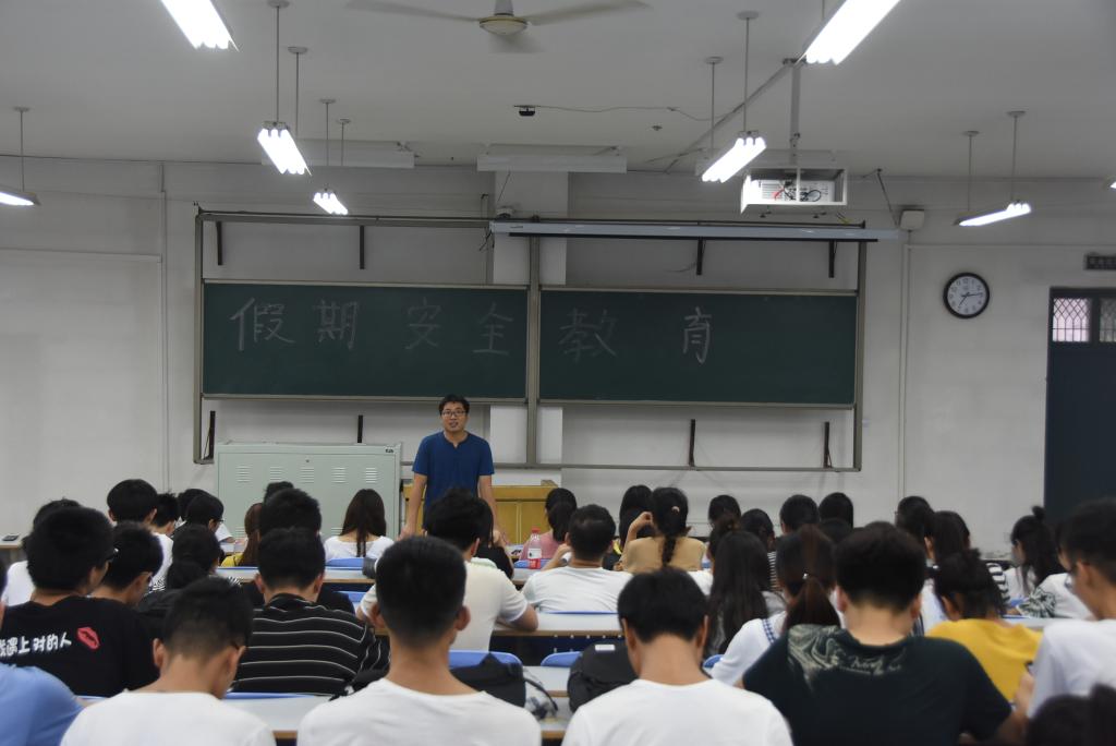 在17级暑期离校教育会议上,贾普君老师指明了在家或者在外打工一定要注意人身安全和财产安全;并且提醒同学们再回家途中注意防骗防盗,不坐黑车,同时要有时间观念以免耽误行程。