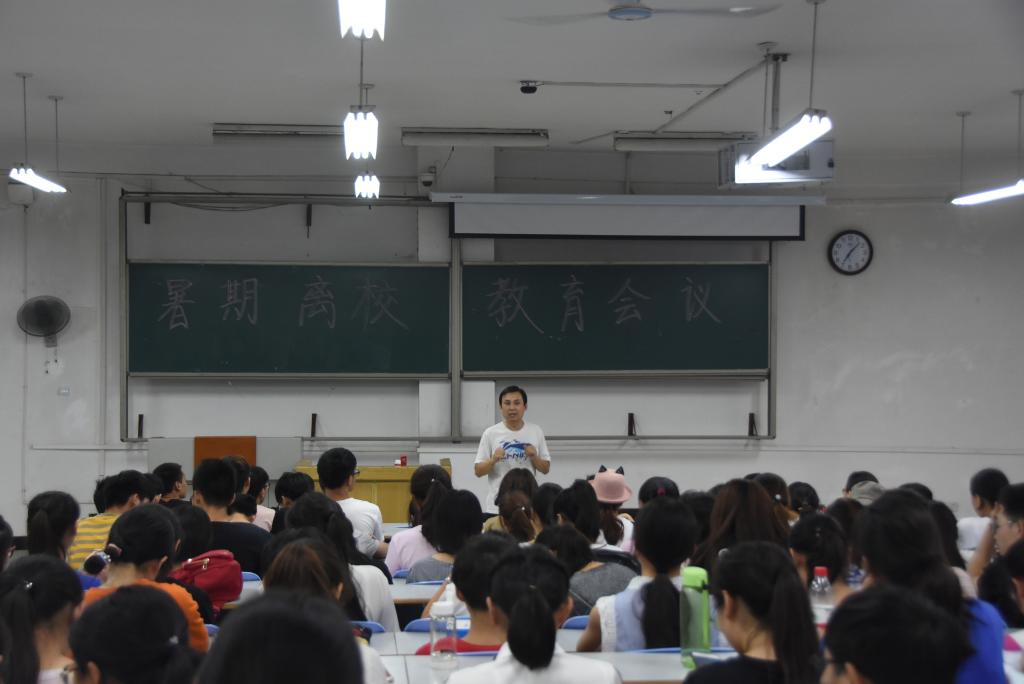 刘喜明老师在16级教育会议上提出,暑假放假离校的时候一定要检查好宿舍的门窗、水电等安全隐患,避免在假期发生意外事故;最后刘老师祝同学们有一个丰富且有意义假期。