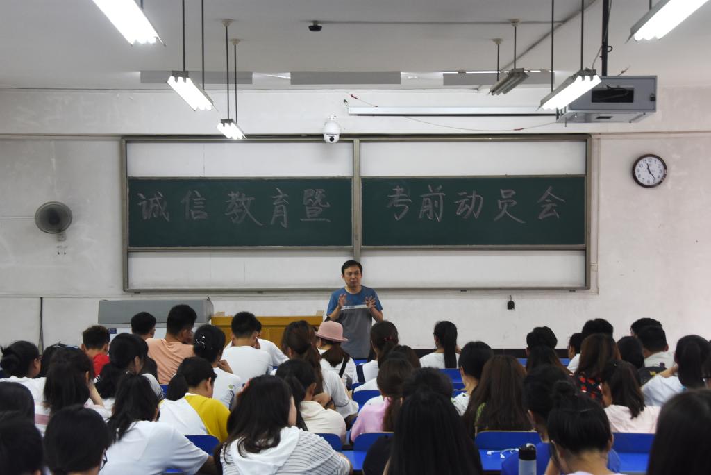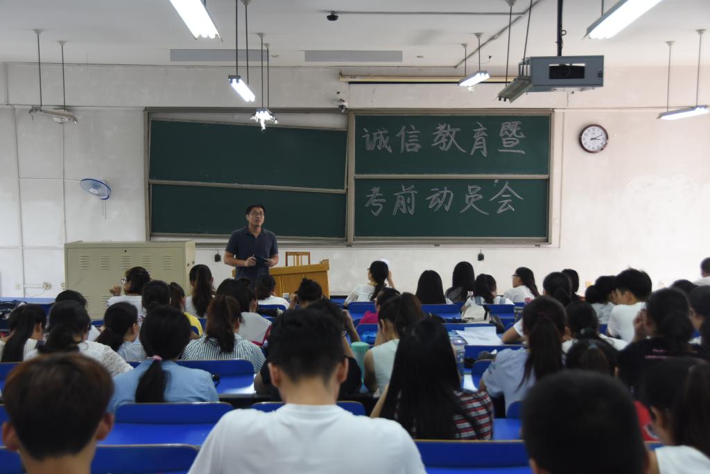 2016级考前动员大会上,刘喜明老师重点强调了诚信的重要性,他结合以往期末考试期间的学生典型事例对诚信考试作了详细说明,并通过考试作弊所产生严重后果的几个角度阐释了诚信考试的重要性,让学生树立诚实守信的观念。