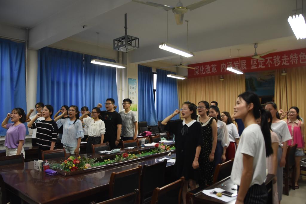本次支部大会进行了三个议程,分别对预备党员转正、接收预备党员和支部委员换届等进行了讨论、审议和表决。支部大会最终在慷慨激昂的重温入党誓词环节中圆满结束。