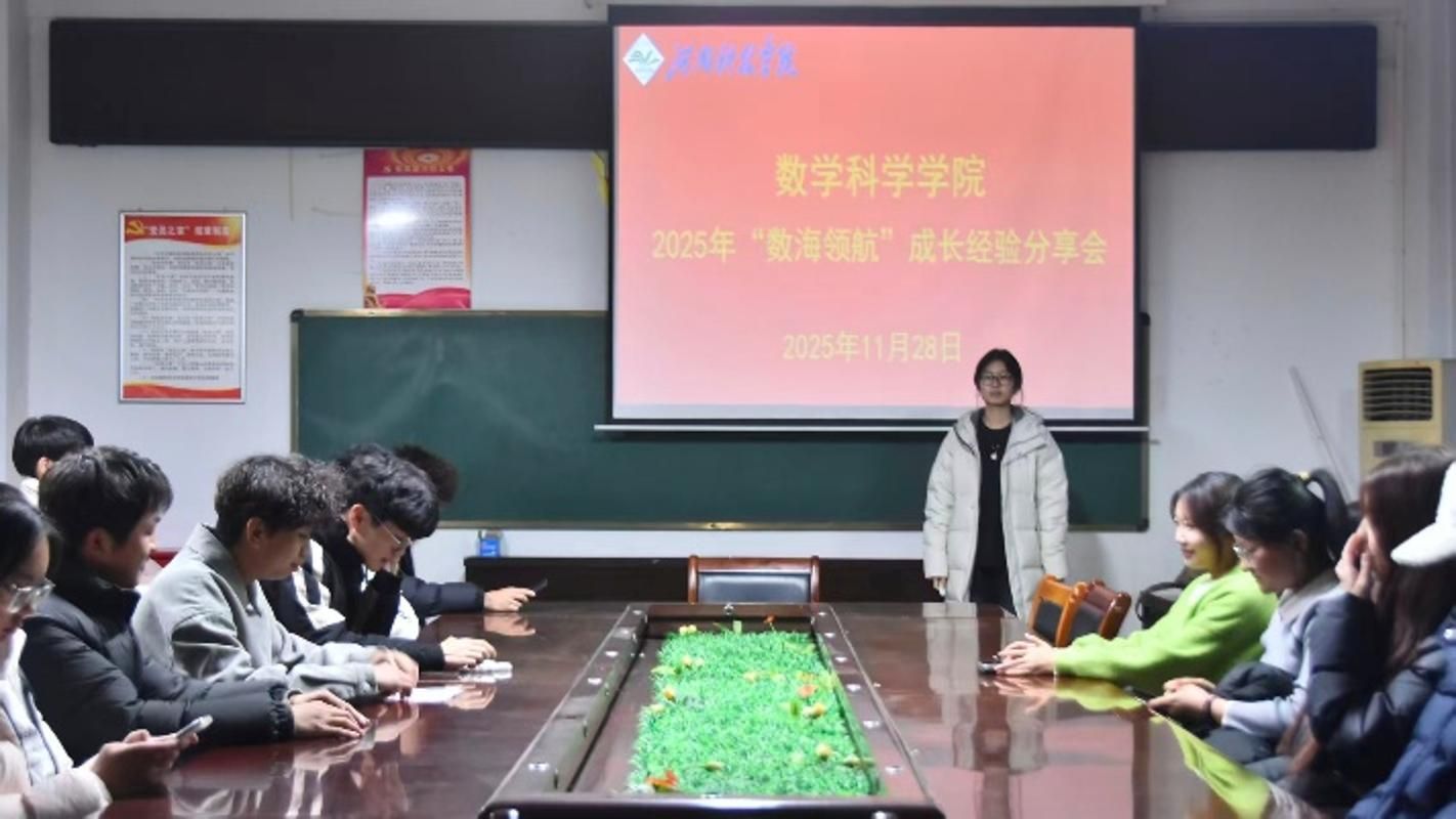 交流会上,与会人员围绕“数海领航”主题展开深入交流。数学与应用数学、信息与计算科学、应用统计学三个专业的高年级学长和学姐,结合自身经历分享实用成长经验与专业学习方法。数学与应用数学专业241班刘心语结合个人学习摸索历程,从知识框架系统梳理、专业难点高效攻克、学习耐心主动培养三个方面分享心得;信息与计算科学专业241班贾涵涵聚焦编程学习与实践应用,详细讲解编程能力从入门到熟练的进阶路径,分享专业理论学习与实操训练的平衡技巧;应用统计学专业241班韩濠宇围绕课程深度学习与专业能力提升,传递知识点精准记忆、统计方法灵活运用及实践经验积累的实用感悟。同时,他们针对2025级新生提出的专业学习困惑,结合自身经历逐一耐心解答,为新生明晰学习方向,助力其少走学习弯路、高效提升专业能力。