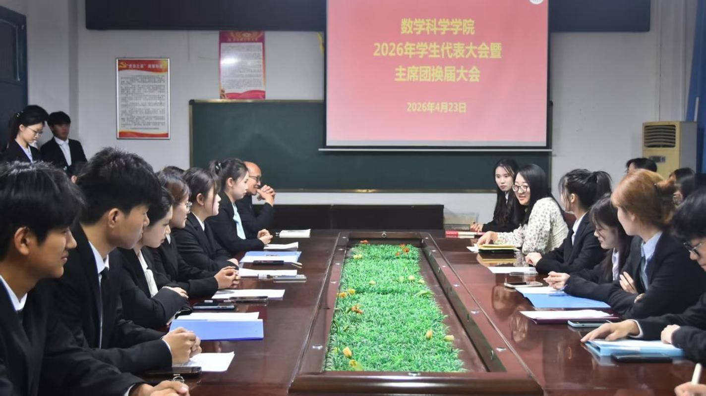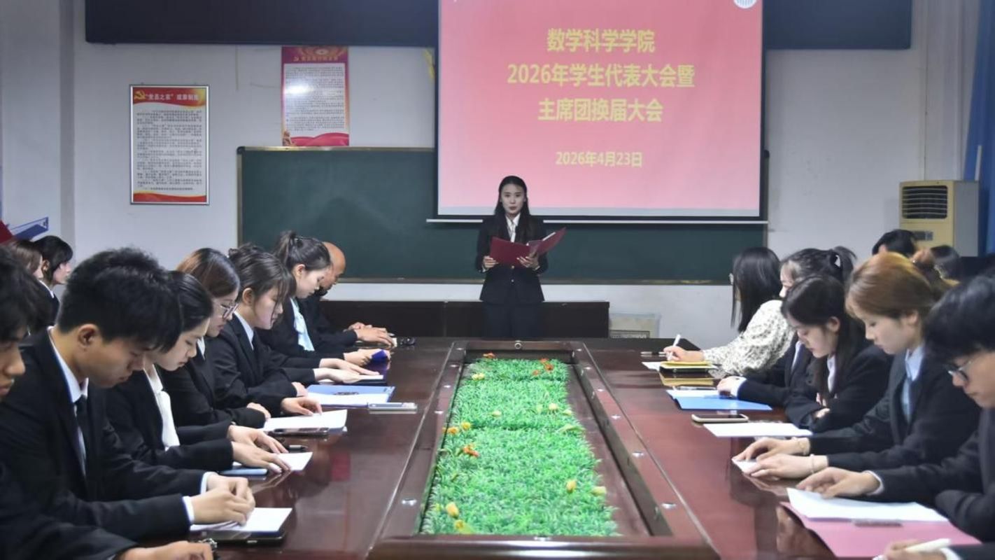 4月23日,嗨皮漫画 于八号楼三楼会议室举办2026年学生代表大会暨主席团换届大会。学院团委书记曲富柱、团委副书记李金璐、辅导员田小霞及全体学生代表共同参会。会议由轮值主席杜怡洁主持。