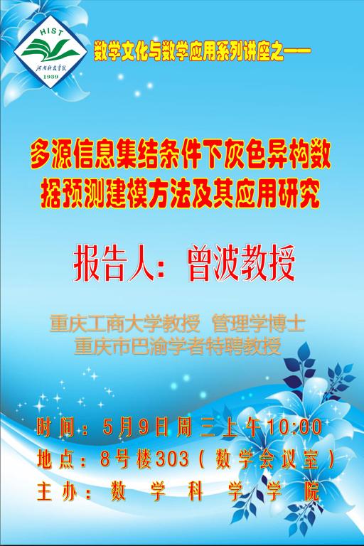 上一条:学术报告——Global weak solutions and boundedness for 3-D chemotaxis-fluid system with p-Laplacian diffusion