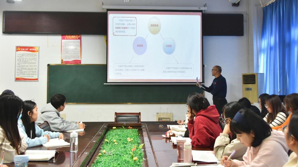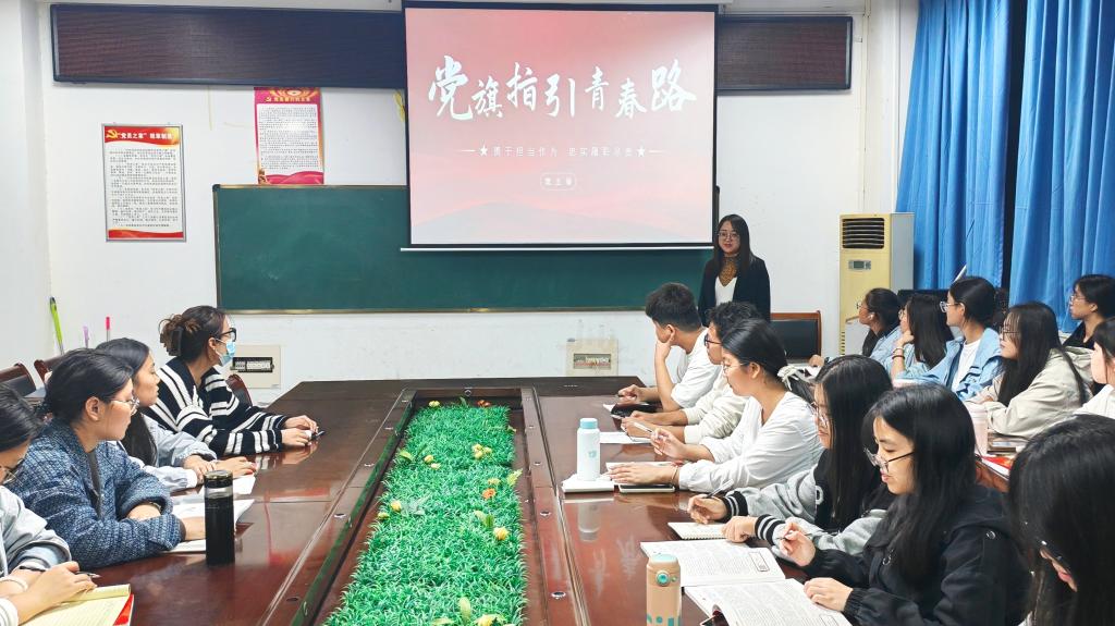 嗨皮漫画 辅导员田小霞以《中国共产党的光辉历程》为主题展开讲解。通过回顾党的光辉历程。生动地展现了党在不同历史时期的奋斗历程和伟大成就,以红色精神激发入党积极分子的爱国爱党热情。
