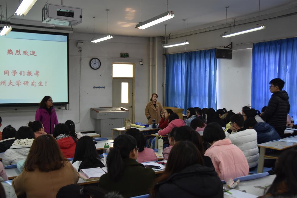 首先董瑞副院长代表全体成员欢迎了从广州大学远道而来的刘凌老师,并向同学们强调了考研的重要性,希望同学们通过本次宣讲会对广州大学有进一步的了解。在宣讲会上,刘凌老师为同学们深入介绍了广州大学,包括校内考研录取情况、奖学金与资助情况、数学学位点以及博士生导师的简介。学生的疑问刘凌老师也认真解答。然后,刘老师热情的欢迎同学们报考广州大学研究生。刘老师热情、细致的介绍给大家留下了深刻印象。最后,辅导员贾普君对本次宣讲会进行了总结,并再一次欢迎刘老师的到来。