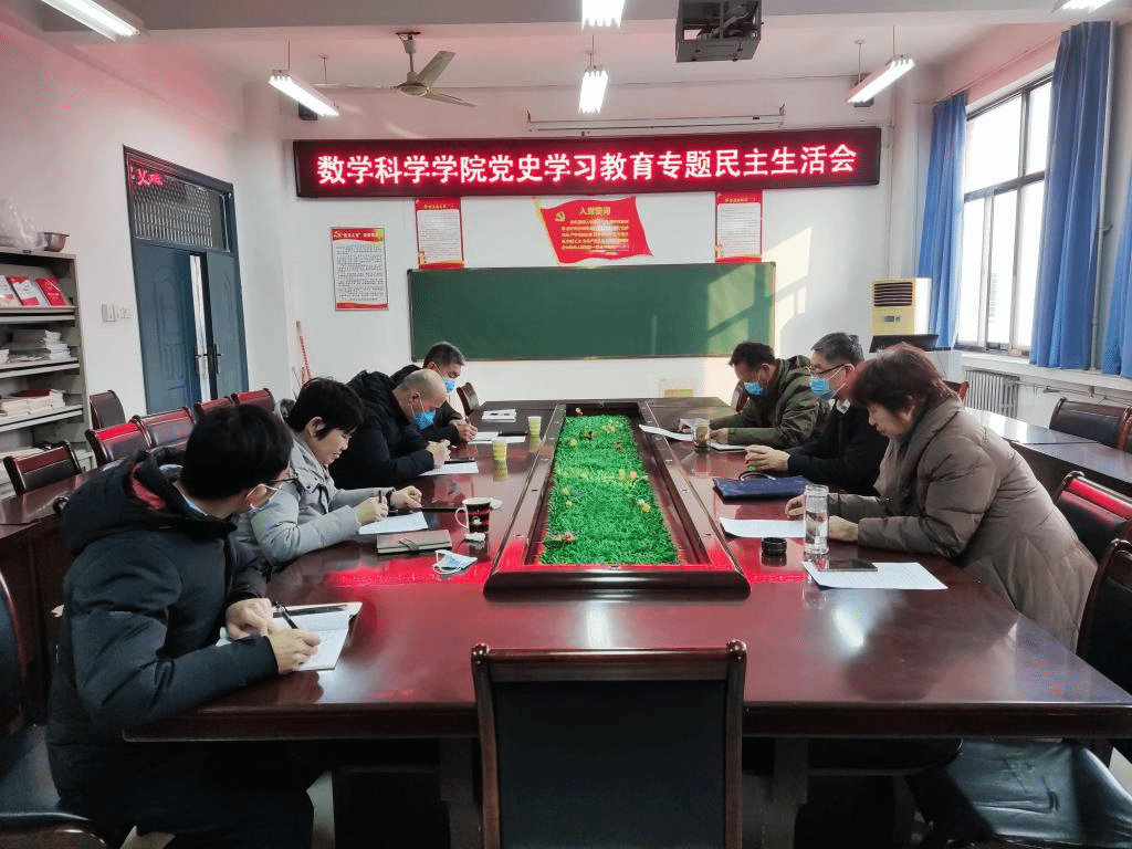 根据校党委的安排部署,1月19日下午,数学科学学院党史学习教育专题民主生活会在学院会议室召开。联点校领导副校长贾积身到会指导,学院党政领导班子成员参加会议。