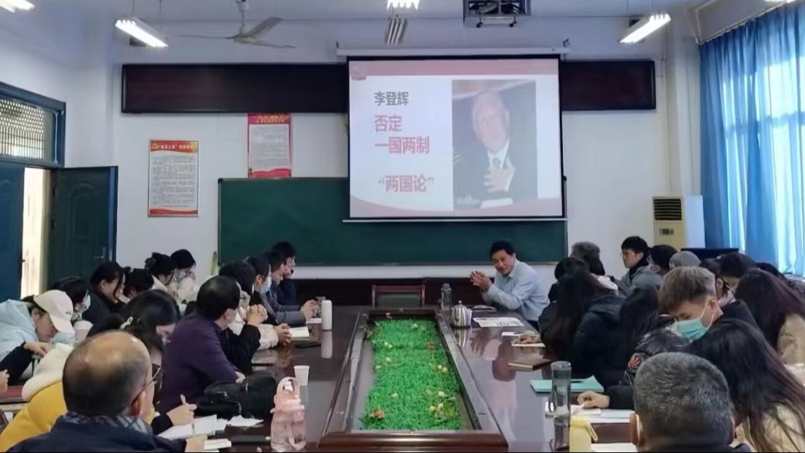 12月3日上午,马克思主义学院党委副书记刘中元在8303会议室进行了题为《当前台海局势与战略分析》的党课培训。他从台湾问题性质的演变、民进党执政以来两岸的局势、新时代中央对台的政策和方略等角度,深刻诠释了台湾问题的发展历程和台海局势。