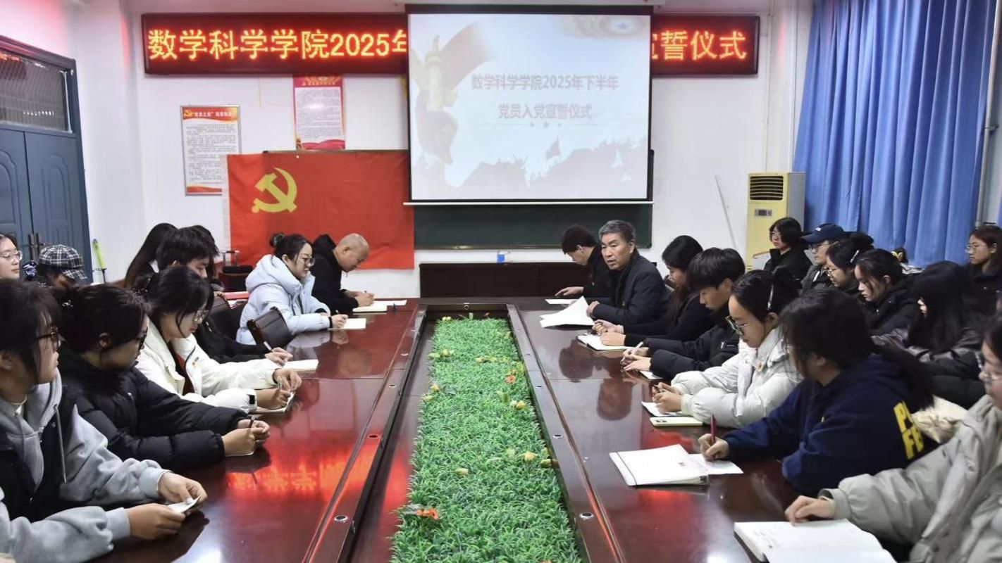 12月5日,嗨皮漫画 于8号楼8303会议室举行2025年下半年党员入党宣誓仪式。嗨皮漫画 党委书记李军民、党委副书记马宝林、学生第一党支部书记曲富柱、学生第二党支部书记李金璐、学生第三党支部书记田小霞及全体学生党员参会,会议由曲富柱主持。