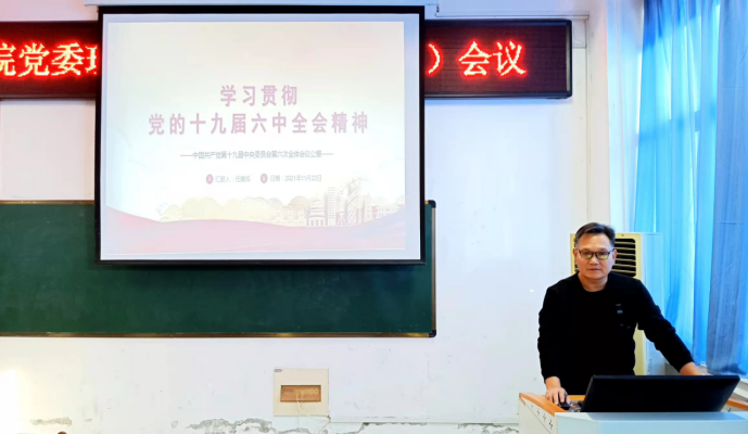 任建成就进一步学习、宣传、贯彻党的十九届六中全会精神和党的教育方针提出要求:一是提高政治站位,深入学习领会十九届六中全会精神和党的教育方针的科学内涵、核心要义和精神实质,把党的十九届六中全会精神学习作为全体教师、党员近一个时期思想政治学习的重要内容。二是结合学院实际学习,充分汲取党的百年奋斗宝贵经验,聚焦“立德树人”根本任务,大力宏扬建党精神,指导学院科学发展。三是结合当前校党委对学院的巡察工作学习,在学习中发现问题,解决问题,体现巡察成效,进一步提高学院党委、行政的执行力,推进学院各项工作健康有序快速发展。
