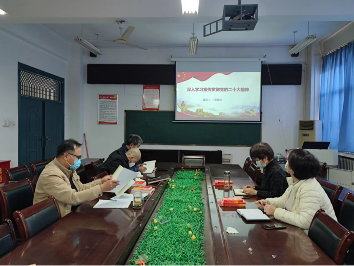 党委理论学习中心组在学院会议室召开党的二十大精神专题学习会。学院党委理论学习中心组成员参加会议,学院党委书记任建成主持会议并作辅导报告。