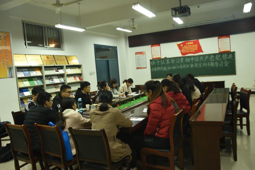 会上,各支部书记传达了学校《关于认真学习贯彻<中国共产党纪律处分条例>的通知》和《关于强化警示教育认真组织学习以案促改典型案例的通知》,随后支部成员认真深入学习了《中国共产党纪律处分条例》和“以案促改”典型案例,每名党员对照查摆自身问题、联系学习和工作实际,认真分析原因,明确整改措施,并虚心听取其他同志的批评和建议。