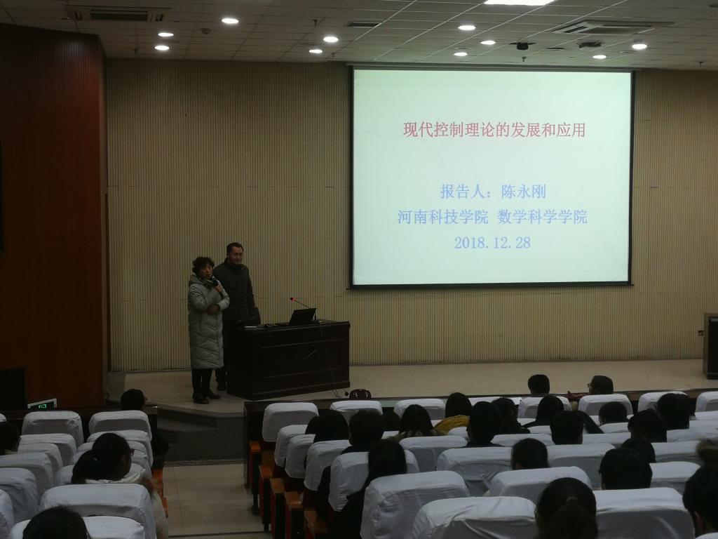 12月28日,我院校级特聘教授陈永刚博士在新图书馆一楼报告厅为大家做了一场题为“现代控制理论的发展和应用”的报告,报告由嗨皮漫画 院长张万芹主持,嗨皮漫画 200余师生参加了报告会。