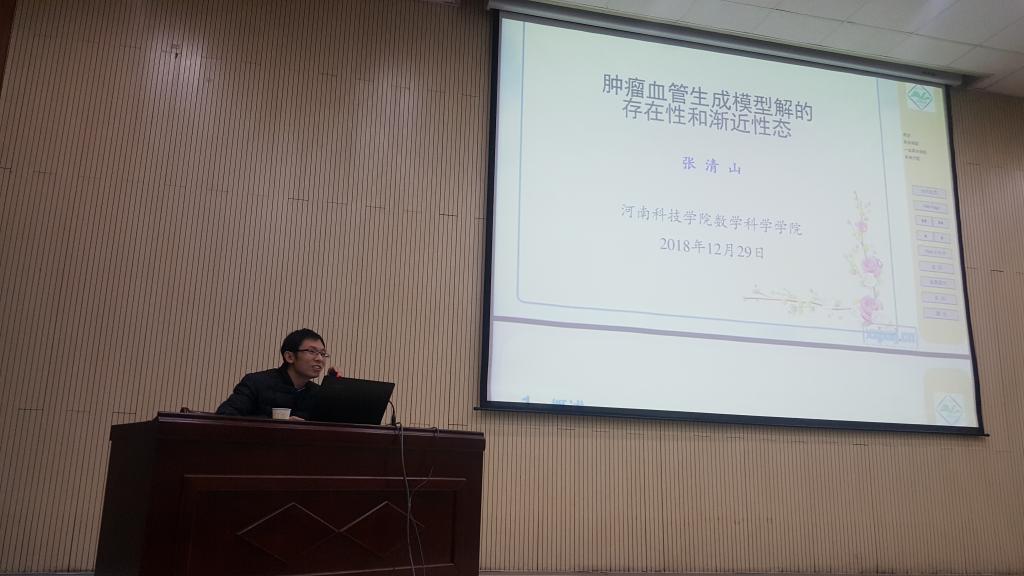 12月29日,我院校级特聘教授张清山博士在新图书馆一楼报告厅为大家做了一场题为“Global existence and large time behavior of angiogenesis system”的报告,报告由嗨皮漫画