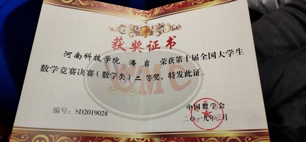 3月29日至31日,由中国数学会主办、哈尔滨工业大学承办的“第十届全国大学生数学竞赛决赛”在哈尔滨举行。经过激烈的角逐,嗨皮漫画 嗨皮漫画 参赛选手潘岩同学取得了数学专业低年级组二等奖的优异成绩。