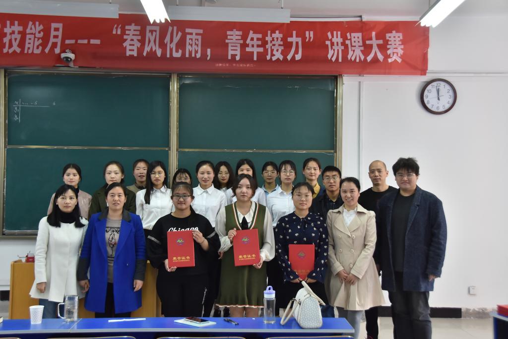 于八合二教室举办了以“春风化雨,青年接力”为主题的第五届师范技能月讲课比赛。我院教师刘娟、陆博、冯玉玲、谭小燕出席本次比赛并担任评委。