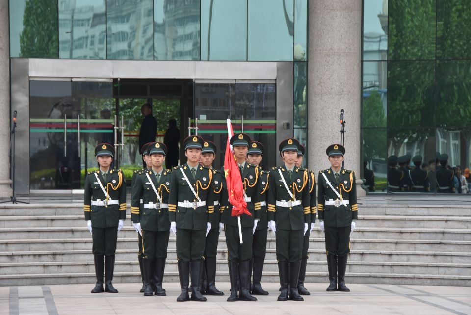 7点整,英姿飒爽的国旗护卫队迈着铿锵有力的步伐,护卫着国旗走向升旗台。在雄壮嘹亮的国歌声中,师生们列队向国旗行注目礼,鲜艳的五星红旗冉冉升起,迎风飘扬。