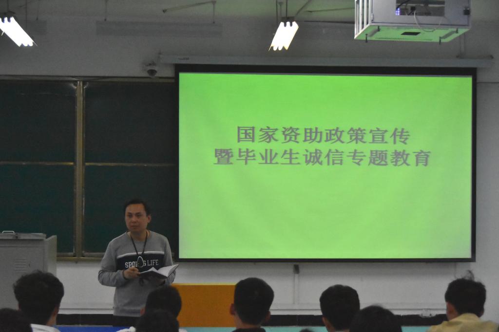 在国家资助政策暨诚信教育会议上,贾老师向同学们详细介绍了国家资助政策相关知识,重点讲解了协议签订的注意事项,强调了同学们应积极主动且做好个人还款事务,树立诚实守信的良好品质,按时还款,诚信做人。