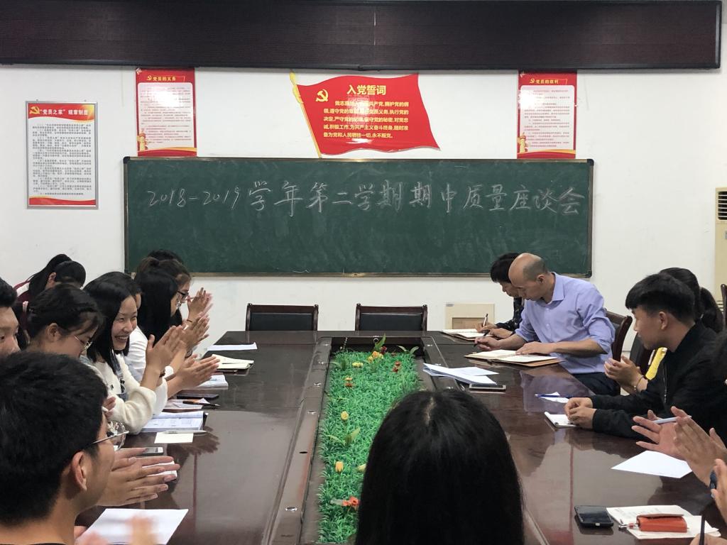 期中教学质量座谈会于5月14日晚在三楼会议室召开。院长张万芹、副院长马宝林、教研室主任及各教师代表以及学生代表70余人参加了此次座谈。座谈会由团委书记贾普君主持。