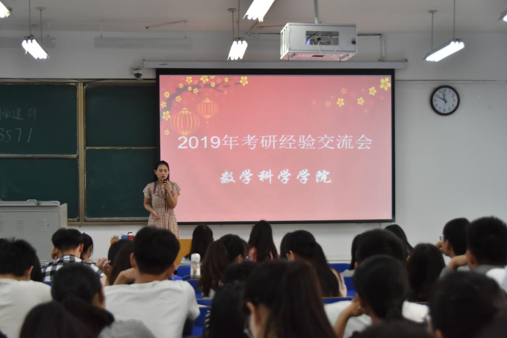 在交流会现场,2019届考取研究生的学姐学长代表为在场同学们讲述了自己对考研课程学习的经验和方法,介绍了自己的考研经历和经验,并对如何考研,如何选择学校以及考研过程中应该注意的事项做出了指导。