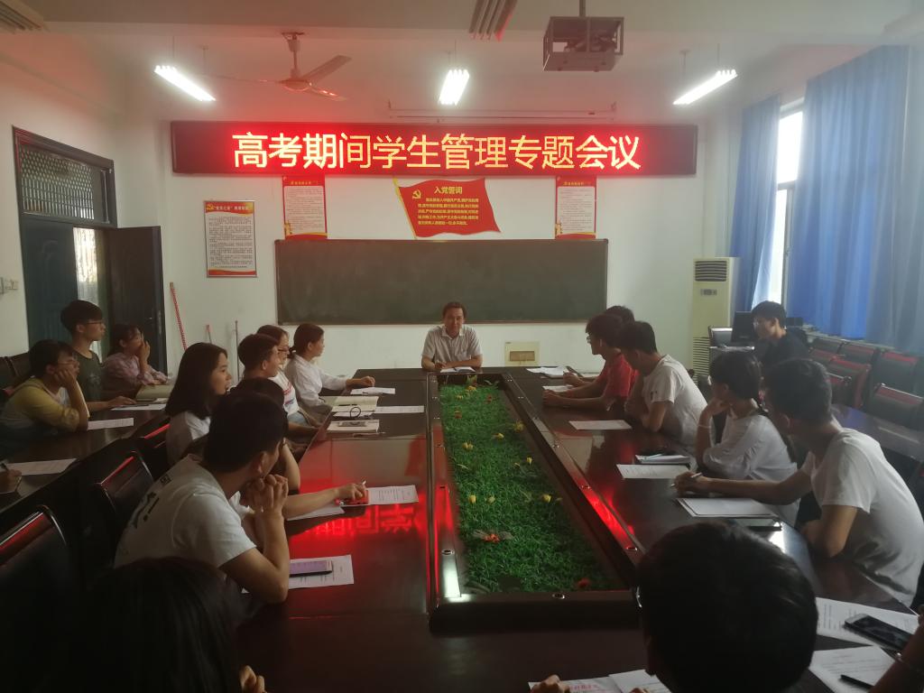 在2019年高考即将来临之际,为保证高考的公正性、公平性,教育引导广大在校大学生养成诚信品质。5月31日,嗨皮漫画 召开高考期间学生管理专题教会议。院团委书记贾普君老师,辅导员刘喜明老师、年级长和各班级负责人参加会议。