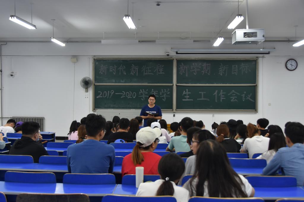 会上,贾老师从老生报道情况、迎新工作、学生会各部室和班级对上个学期的工作总结和本学期工作的安排、上课和作息时间的调整、诚信补考、奖助贷前期准备工作等六个方面的工作作出部署和提出要求。他重点强调了开学初期和迎新期间的安全问题。随后,刘老师针对学院的早操早读问题提出了整改要求,希望同学们做到有张有弛的同时抓紧学习的时间,提升学业成绩。
