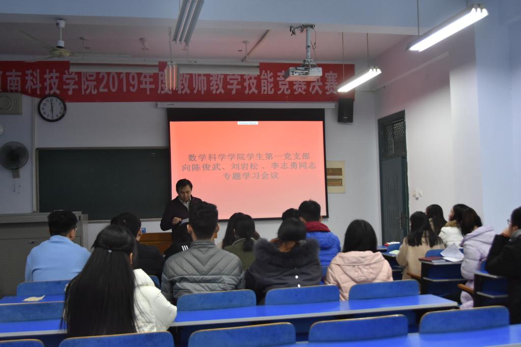 12月5日下午,我院举办向“时代楷模”陈俊武同志以及“河南省优秀共产党员”刘岩松、李志勇同志学习活动。全体教职工和学生党员参加本次学习活动。