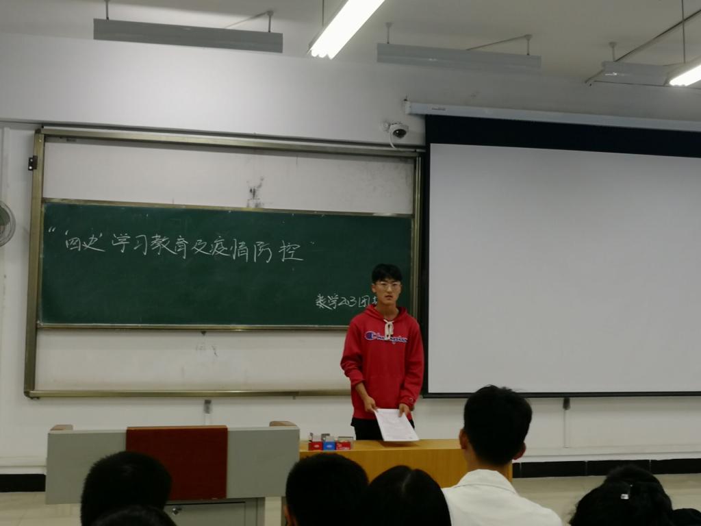 本次活动主要分为两部分,首先由各班团支书组织开展“四史及疫情防控班会”深入学习党章、党的十九大报告以及习近平总书记关于党史、新中国史、改革开放史、社会主义发展史及新冠肺炎疫情防控的重要论述,各班通过线上线下相结合的形式积极展开学习活动,各班成员积极在班级QQ群转发相关学习资料,使同学们更全面地了解“四史”,学习“四史”。在学习基本知识后进行讨论并撰写心得体会。第二部分是进行疫情防控知识竞答,本次竞答采用移动APP、“两微一端”等信息技术手段,综合运用网上答题,各班成员积极参与,并在答题后进行讨论。