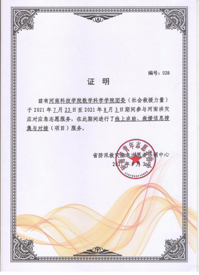 志愿服务队一次次的统计对接和服务,为防汛救灾贡献了力量,得到了河南省青年志愿者协会和省防汛救灾应急志愿者协调中心高度赞扬,用行动诠释了新时代青年大学生的责任与担当。