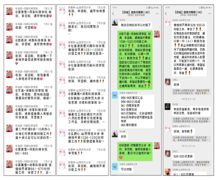 团委书记贾普君老师积极号召师生参与其中,组成了一只50余人的科院数学线上志愿服务队,在明确各团队分工的情况下,成员们快速开展相关信息收集、整理、核实与对接工作。