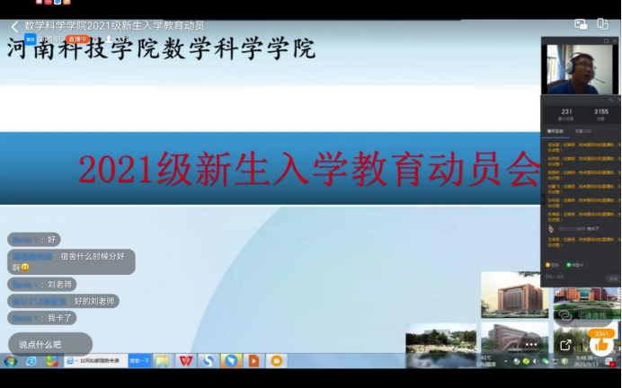 为使新生尽快适应大学节奏,更好地进入学习、生活状态。我院于9月13日上午在线上召开2021级新生入学教育动员会。会议由院团委副书记兼2021级新生辅导员刘喜明老师主持,新生班主任和2021级全体同学共250余人参加会议。