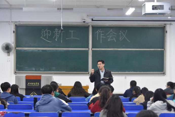 在八合一召开新学期学生干部工作例会暨迎新工作会议。院团委书记贾普君,副书记刘喜明,辅导员孙艳华、张继杰以及全体学生干部参与本次会议。会议由贾普君主持。