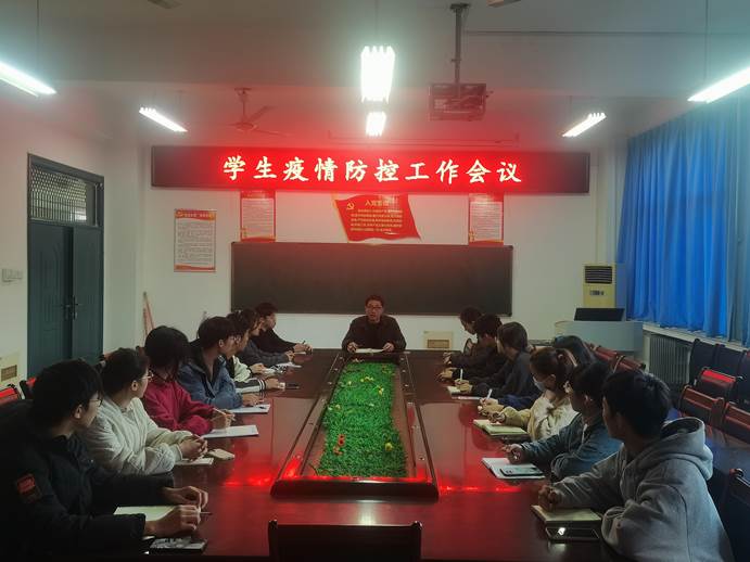 为进一步深入贯彻落实省教育厅、新乡市和学校最新疫情防控决策部署要求,确保师生健康安全。11月12日,我院召开学生疫情防控工作会议。会议由团委副书记刘喜明主持,学院主要学生干部参加会议。