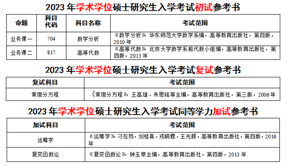 二、招生专业目录、考试科目及参考书目