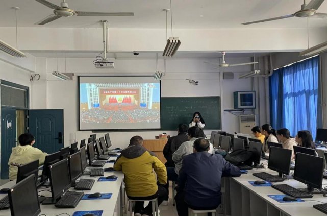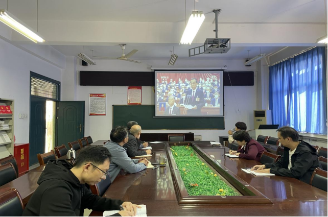 全体师生认真听取了习近平总书记代表第十九届中央委员向大会所作报告。整个过程中,大家都聚精会神,仔细聆听。