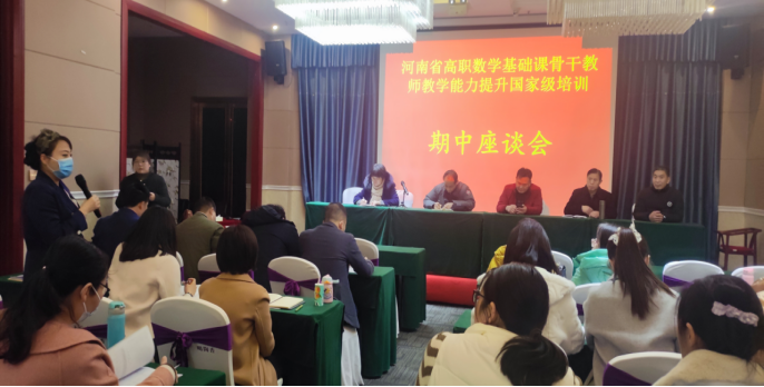 为全面了解和掌握本次培训的整体运行情况,了解培训内容与学员需求的锲合度,了解学员其它诉求等,以调整后面的培训内容,全方位提高培训质量,2月24日,由我院牵头组织,并邀请了继续教育学院的相关领导,于五号食堂牧野厅召开2022年度河南省高职数学基础课骨干教师教学能力提升国家级培训期中座谈会。继续学院院长陈熙渠、副院长杨景旗、我院党委书记任建成、党委副书记李军民、副院长董瑞、班主任包东娥、孙艳华及全体学员参加了会议。