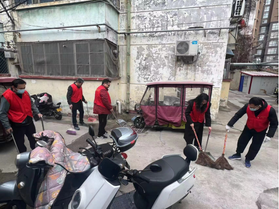 组织教工党员志愿者前往黄河口社区24、26号无主庭院开展志愿帮扶活动。