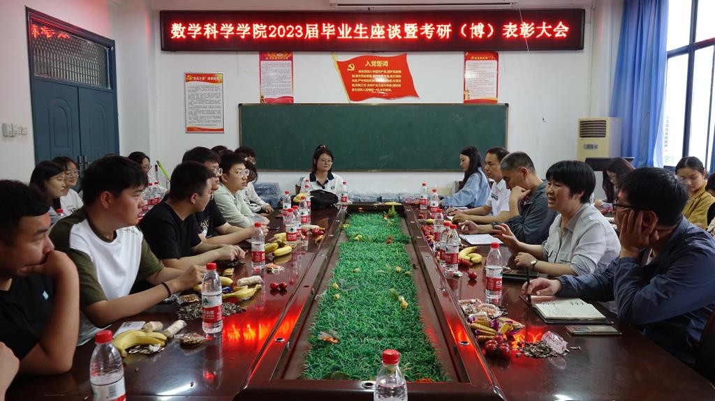 在学院会议室召开2023届毕业生座谈暨考研表彰大会。学院领导班子成员、辅导员、考取研究生代表、毕业生代表及低年级学生代表40余人参加本次会议。会议由院团委书记、2023届毕业生辅导员贾普君主持。