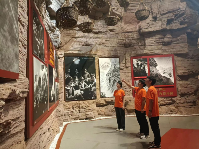 在红旗渠总干渠的咽喉工程—青年洞,学员们沿着悬崖峭壁上蜿蜒崎岖的山路,感受当年工程建设的艰辛,深刻领会红旗渠精神的内涵。学员们结合资料及自身感受,向游客宣讲了红旗渠的历史背景、建设过程、意义以及在红旗渠建设期间所涌现的英雄事迹,让游客更加深入地了解红旗渠精神的内涵。