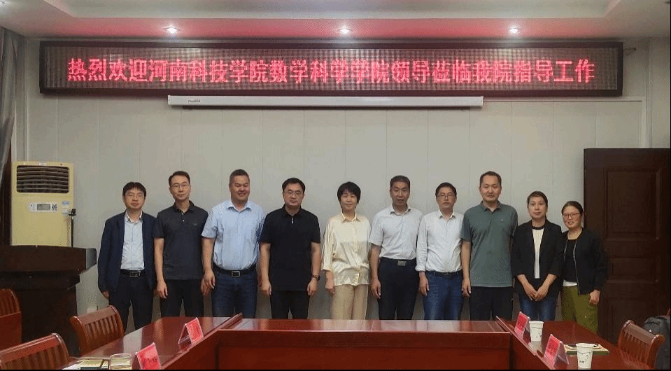 党委书记李军民、院长董瑞带领班子成员和公共数学负责人前往信阳师范大学数学与统计学院进行调研。信阳师范大学数学与统计学院院长蔡礼明等班子成员和相关负责人参加了调研座谈。