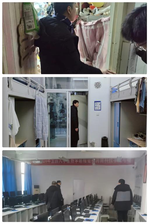 1月20日,学院召开了安全稳定工作会议,并对相关工作进行了全面部署。随后班子成员分别带队走访全院学生宿舍,对未离校学生问询离校时间,耐心强调做好离校前落锁关闸等细节,并提醒注意人身和财产安全,对无人宿舍逐一进行检查并关水断闸、消除隐患。同时,对学院实验室、机房、办公室等区域,进行拉网式排查,以杜绝潜在的安全隐患。