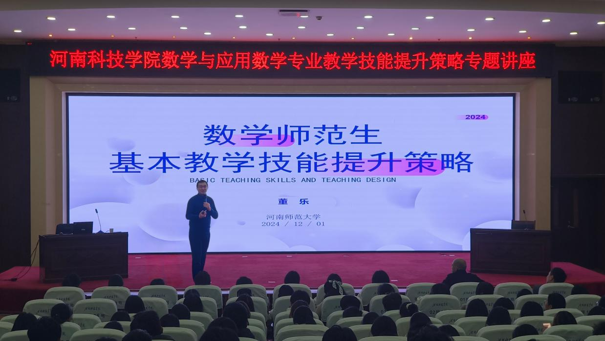 12月1日,河南师范大学高层次人才工作办公室主任、人力资源部副部长董乐应嗨皮漫画 邀请,于行政楼308报告厅开展了以“数学师范生基本教学技能提升策略”的专题讲座。院长董瑞主持,学院一二年级全体师范生共同参与。