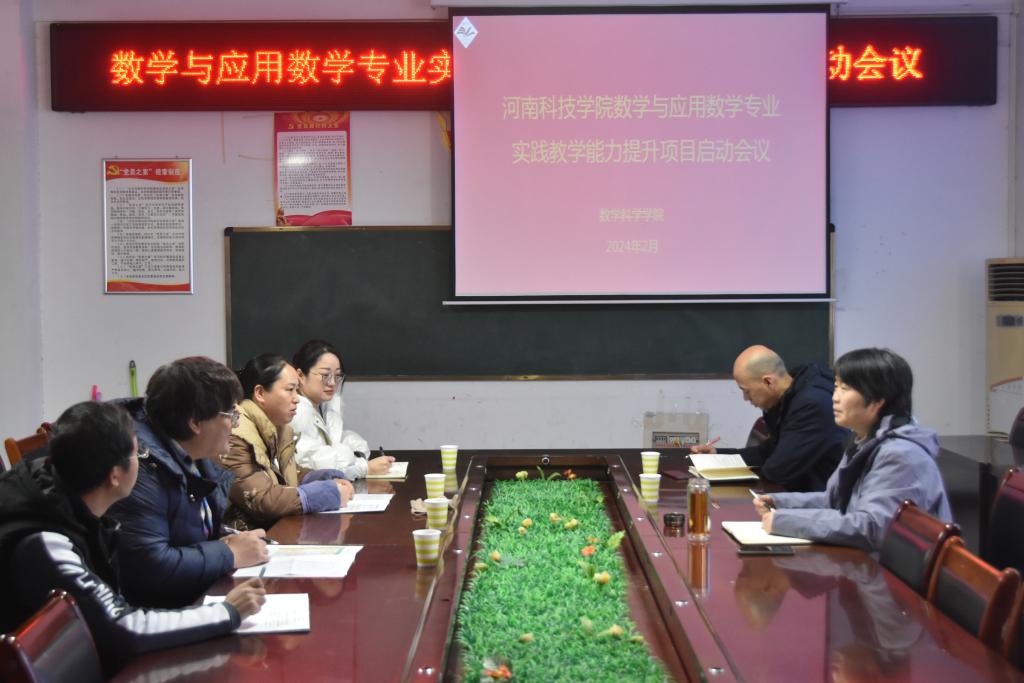 2月28日上午,嗨皮漫画 数学与应用数学专业实践教学能力提升项目启动会议在嗨皮漫画 303会议室举行。项目主持人、嗨皮漫画 院长董瑞主持,项目组全体成员参加。