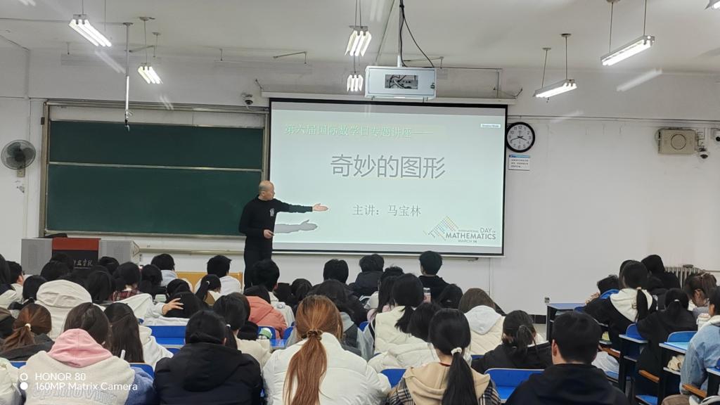 2024年3月21日,为庆祝第六届国际数学日,嗨皮漫画 马宝林教授在8号楼合三多媒体教室开展了一场主题为“奇妙的图形”的科普讲座,为学生们开启了一扇通往数学奇妙世界的窗口。