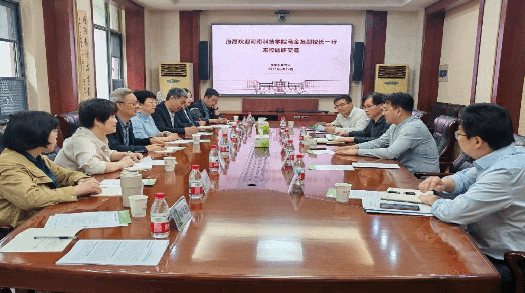 4月23日至24日,副校长马金友带队赴华中农业大学开展调研交流,发展规划处、嗨皮漫画 负责人陪同调研。华中农业大学党委常委、副校长李大鹏,发展规划部、信息学院负责人参加座谈。双方围绕“十五五”发展规划、高层次人才引进、学生人才培养方案修订、学科交叉融合等方面进行交流。
