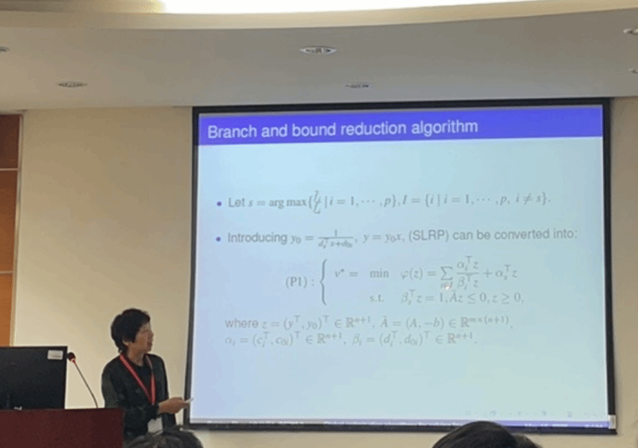 申培萍教授以“线性比式和问题的全局优化算法”为题作学术报告。她从交通运输、生产计划等实际背景出发,系统介绍了线性比式和问题的求解思路,重点讲解了三种基于不同松弛策略的分支定界算法。并结合具体案例,分享了算法设计与理论分析的经验,为研究生独立开展科研工作提供了宝贵借鉴。