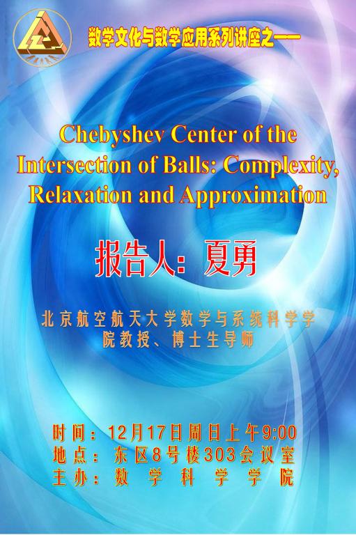 报告题目:ChebyshevCenter of the Intersection of Balls: Complexity, Relaxation andApproximation