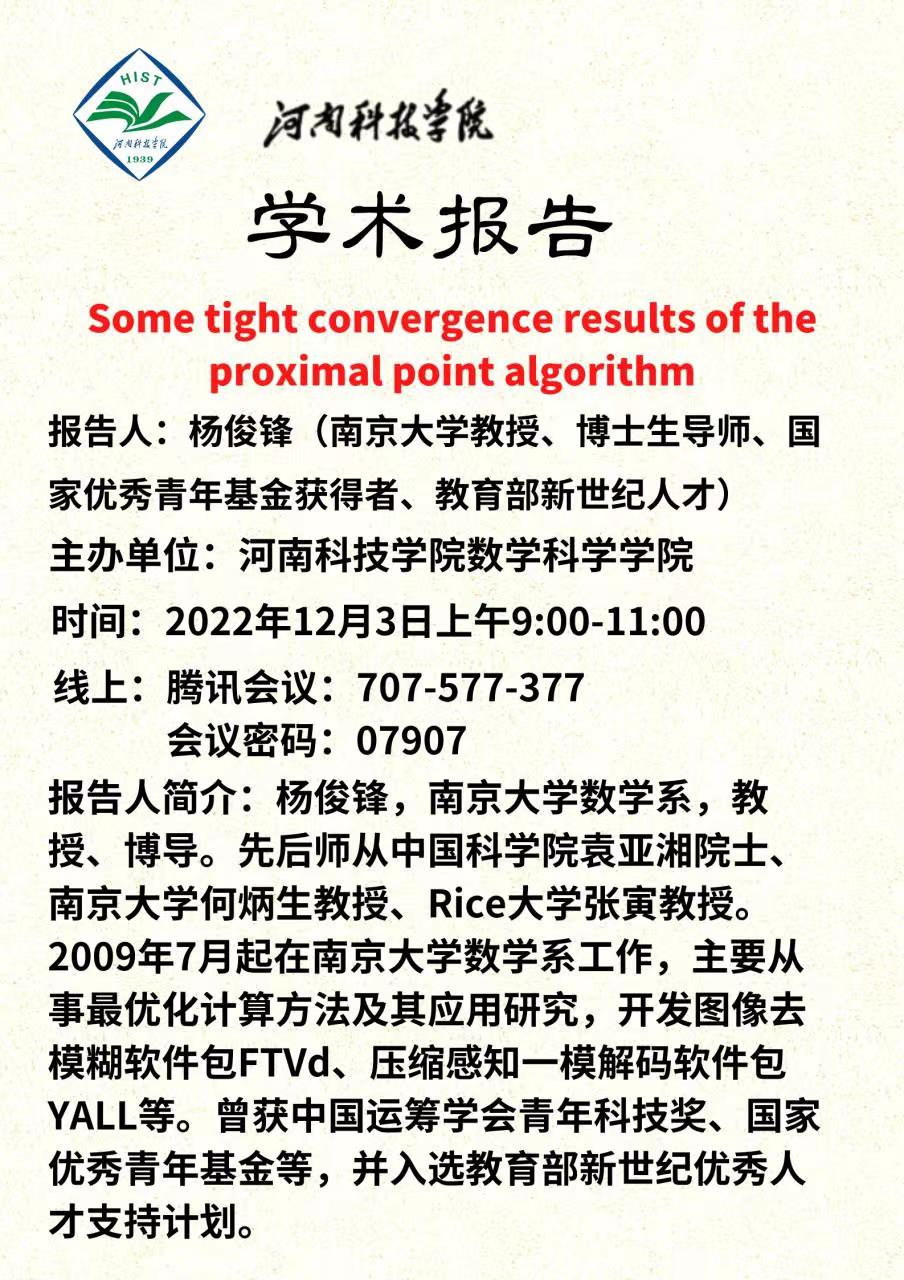 学术报告——Some tight convergence results of theproximal point algorithm